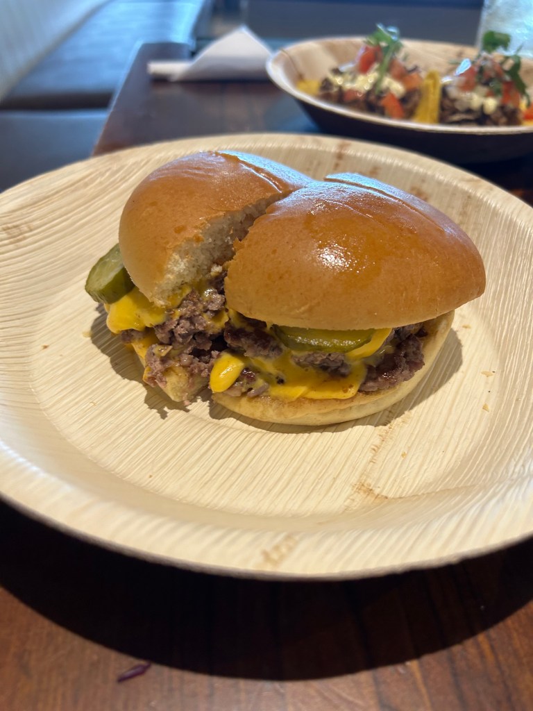Battered and fried chicken thigh that was still nice and juicy (literally no way to writing that that doesn’t sound gross), some pickles a la American fired chicken sandwiches and a little slaw for good measure. Really enjoyed this, came on the same bun as the Smash, but again I felt like it needed some OOMPH, maybe some hot honey? Some hot sauce? Regardless, good burger!