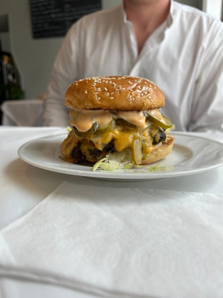 Vibe: I shouldn’t be eating this, but this is a lovely place so its probably ok! It’s a Big Mac without the guilt! White tablecloths means health, right? Grown up burger time!